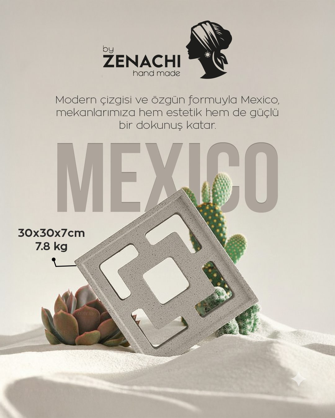Mexico Ölçüler : 30x30x7 cm Ağırlık : 7.8 kgModern çizgisi ve özgün formuyla Mexico, mekanlarımıza hem estetik hem de güçlü bir dokunuş katar.